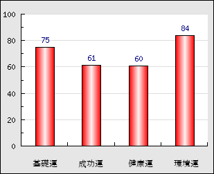 環境運 家庭や職場等での援助運・環境運を司ります。これが良いと配偶者や子供・職場の同僚などから助力が得られやすく、悪いと波乱・不和・孤独などがあります。 84点