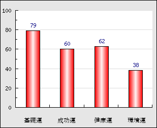 環境運 家庭や職場等での援助運・環境運を司ります。これが良いと配偶者や子供・職場の同僚などから助力が得られやすく、悪いと波乱・不和・孤独などがあります。 38点
