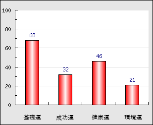 成功運 目的に対する成功運の強さをあらわします。この点数が高いほど自分の思い通りに成功し、逆に悪いと逆境・批判・障害などに苦心します。 32点