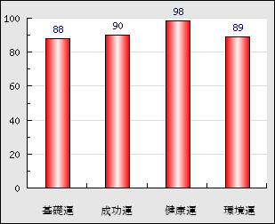 成功運 目的に対する成功運の強さをあらわします。この点数が高いほど自分の思い通りに成功し、逆に悪いと逆境・批判・障害などに苦心します。 90点