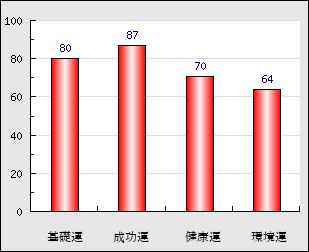 成功運 目的に対する成功運の強さをあらわします。この点数が高いほど自分の思い通りに成功し、逆に悪いと逆境・批判・障害などに苦心します。 87点