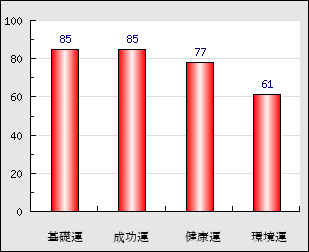 成功運 目的に対する成功運の強さをあらわします。この点数が高いほど自分の思い通りに成功し、逆に悪いと逆境・批判・障害などに苦心します。 85点