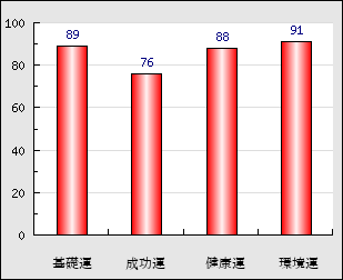 健康運 体力・健康に恵まれるか否かをあらわします。先天的に健康に恵まれても、これが悪いと次第に病弱となり、種々の病気に悩まされやすくなります。 88点