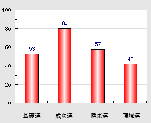 成功運 目的に対する成功運の強さをあらわします。この点数が高いほど自分の思い通りに成功し、逆に悪いと逆境・批判・障害などに苦心します。 80点