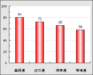 環境運 家庭や職場等での援助運・環境運を司ります。これが良いと配偶者や子供・職場の同僚などから助力が得られやすく、悪いと波乱・不和・孤独などがあります。 58点