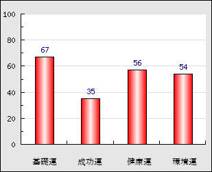 成功運 目的に対する成功運の強さをあらわします。この点数が高いほど自分の思い通りに成功し、逆に悪いと逆境・批判・障害などに苦心します。 35点