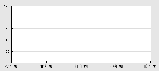 ※年代別運勢グラフは、あくまでも時期別の運勢を概算したものですので参考程度にご覧ください。少年期や青年期の運勢が平均と比べて高い場合は比較的若い頃に成功や幸福があり、反対に中年期や晩年期の運勢が平均と比べて高い場合は後年に華開く大器晩成型と言えるでしょう。ただし、少年期の運勢が低いからと言って、若い頃は成功しないといったことではありません。
