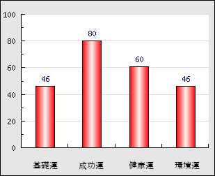成功運 目的に対する成功運の強さをあらわします。この点数が高いほど自分の思い通りに成功し、逆に悪いと逆境・批判・障害などに苦心します。 80点