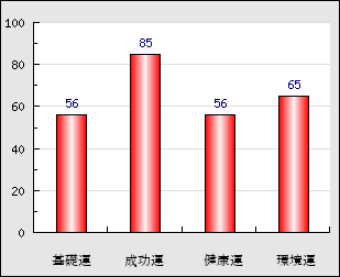 環境運 家庭や職場等での援助運・環境運を司ります。これが良いと配偶者や子供・職場の同僚などから助力が得られやすく、悪いと波乱・不和・孤独などがあります。 65点