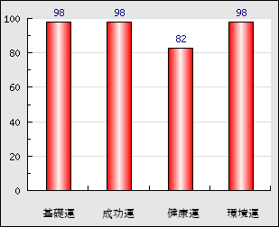 環境運 家庭や職場等での援助運・環境運を司ります。これが良いと配偶者や子供・職場の同僚などから助力が得られやすく、悪いと波乱・不和・孤独などがあります。 98点