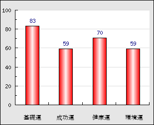 環境運 家庭や職場等での援助運・環境運を司ります。これが良いと配偶者や子供・職場の同僚などから助力が得られやすく、悪いと波乱・不和・孤独などがあります。 59点
