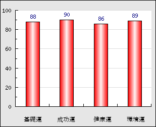 成功運 目的に対する成功運の強さをあらわします。この点数が高いほど自分の思い通りに成功し、逆に悪いと逆境・批判・障害などに苦心します。 90点