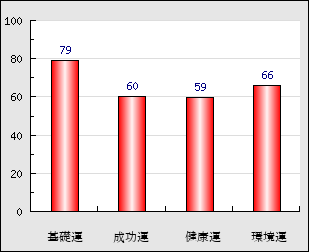 成功運 目的に対する成功運の強さをあらわします。この点数が高いほど自分の思い通りに成功し、逆に悪いと逆境・批判・障害などに苦心します。 60点