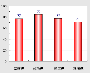 環境運 家庭や職場等での援助運・環境運を司ります。これが良いと配偶者や子供・職場の同僚などから助力が得られやすく、悪いと波乱・不和・孤独などがあります。 71点