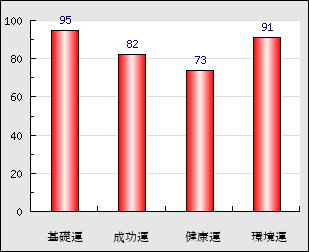 環境運 家庭や職場等での援助運・環境運を司ります。これが良いと配偶者や子供・職場の同僚などから助力が得られやすく、悪いと波乱・不和・孤独などがあります。 91点