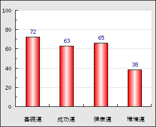 環境運 家庭や職場等での援助運・環境運を司ります。これが良いと配偶者や子供・職場の同僚などから助力が得られやすく、悪いと波乱・不和・孤独などがあります。 38点