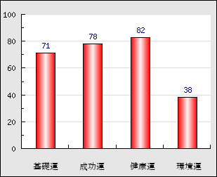 環境運 家庭や職場等での援助運・環境運を司ります。これが良いと配偶者や子供・職場の同僚などから助力が得られやすく、悪いと波乱・不和・孤独などがあります。 38点