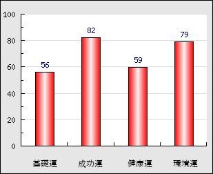 成功運 目的に対する成功運の強さをあらわします。この点数が高いほど自分の思い通りに成功し、逆に悪いと逆境・批判・障害などに苦心します。 82点