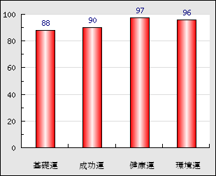 環境運 家庭や職場等での援助運・環境運を司ります。これが良いと配偶者や子供・職場の同僚などから助力が得られやすく、悪いと波乱・不和・孤独などがあります。 96点