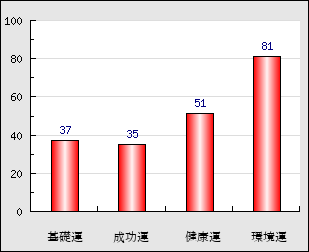 成功運 目的に対する成功運の強さをあらわします。この点数が高いほど自分の思い通りに成功し、逆に悪いと逆境・批判・障害などに苦心します。 35点