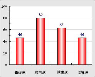 成功運 目的に対する成功運の強さをあらわします。この点数が高いほど自分の思い通りに成功し、逆に悪いと逆境・批判・障害などに苦心します。 80点