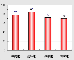 環境運 家庭や職場等での援助運・環境運を司ります。これが良いと配偶者や子供・職場の同僚などから助力が得られやすく、悪いと波乱・不和・孤独などがあります。 70点