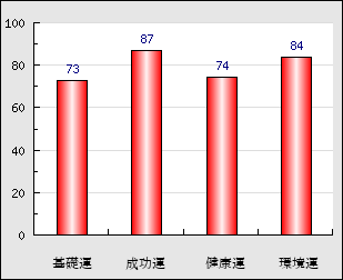 環境運 家庭や職場等での援助運・環境運を司ります。これが良いと配偶者や子供・職場の同僚などから助力が得られやすく、悪いと波乱・不和・孤独などがあります。 84点