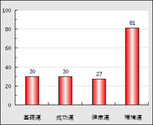 成功運 目的に対する成功運の強さをあらわします。この点数が高いほど自分の思い通りに成功し、逆に悪いと逆境・批判・障害などに苦心します。 30点