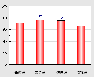 環境運 家庭や職場等での援助運・環境運を司ります。これが良いと配偶者や子供・職場の同僚などから助力が得られやすく、悪いと波乱・不和・孤独などがあります。 66点