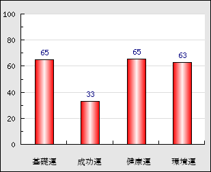環境運 家庭や職場等での援助運・環境運を司ります。これが良いと配偶者や子供・職場の同僚などから助力が得られやすく、悪いと波乱・不和・孤独などがあります。 63点