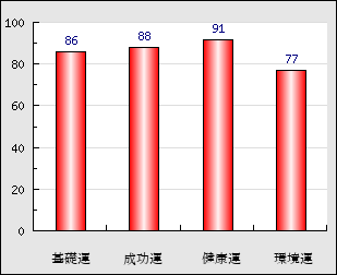 成功運 目的に対する成功運の強さをあらわします。この点数が高いほど自分の思い通りに成功し、逆に悪いと逆境・批判・障害などに苦心します。 88点