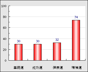 環境運 家庭や職場等での援助運・環境運を司ります。これが良いと配偶者や子供・職場の同僚などから助力が得られやすく、悪いと波乱・不和・孤独などがあります。 74点