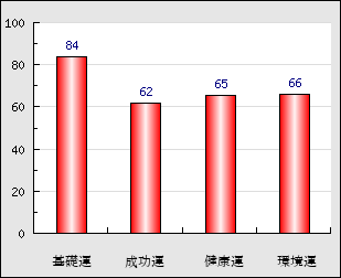成功運 目的に対する成功運の強さをあらわします。この点数が高いほど自分の思い通りに成功し、逆に悪いと逆境・批判・障害などに苦心します。 62点