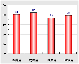環境運 家庭や職場等での援助運・環境運を司ります。これが良いと配偶者や子供・職場の同僚などから助力が得られやすく、悪いと波乱・不和・孤独などがあります。 79点