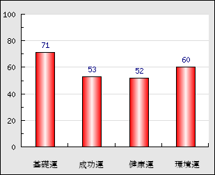 環境運 家庭や職場等での援助運・環境運を司ります。これが良いと配偶者や子供・職場の同僚などから助力が得られやすく、悪いと波乱・不和・孤独などがあります。 60点