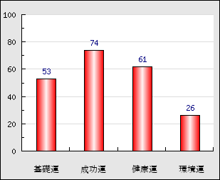 成功運 目的に対する成功運の強さをあらわします。この点数が高いほど自分の思い通りに成功し、逆に悪いと逆境・批判・障害などに苦心します。 74点