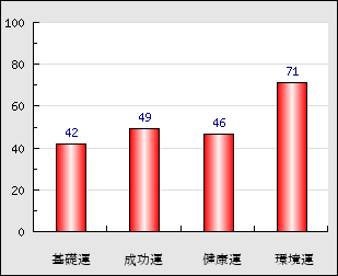 環境運 家庭や職場等での援助運・環境運を司ります。これが良いと配偶者や子供・職場の同僚などから助力が得られやすく、悪いと波乱・不和・孤独などがあります。 71点