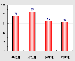 | 環境運 | 家庭や職場等での援助運・環境運を司ります。これが良いと配偶者や子供・職場の同僚などから助力が得られやすく、悪いと波乱・不和・孤独などがあります。 | 63点 |