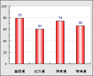 成功運 目的に対する成功運の強さをあらわします。この点数が高いほど自分の思い通りに成功し、逆に悪いと逆境・批判・障害などに苦心します。 60点