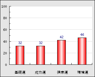 環境運 家庭や職場等での援助運・環境運を司ります。これが良いと配偶者や子供・職場の同僚などから助力が得られやすく、悪いと波乱・不和・孤独などがあります。 46点