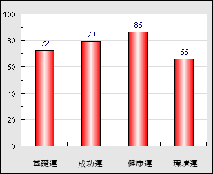 健康運 体力・健康に恵まれるか否かをあらわします。先天的に健康に恵まれても、これが悪いと次第に病弱となり、種々の病気に悩まされやすくなります。 86点