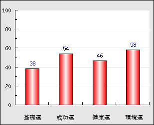 環境運 家庭や職場等での援助運・環境運を司ります。これが良いと配偶者や子供・職場の同僚などから助力が得られやすく、悪いと波乱・不和・孤独などがあります。 58点