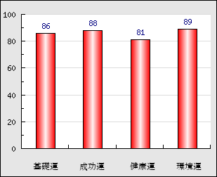 環境運 家庭や職場等での援助運・環境運を司ります。これが良いと配偶者や子供・職場の同僚などから助力が得られやすく、悪いと波乱・不和・孤独などがあります。 89点