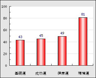 環境運 家庭や職場等での援助運・環境運を司ります。これが良いと配偶者や子供・職場の同僚などから助力が得られやすく、悪いと波乱・不和・孤独などがあります。 81点