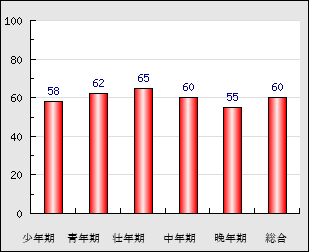 | 中年期 | 50~65歳頃 | 60点 0.0 |