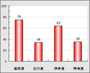 環境運 家庭や職場等での援助運・環境運を司ります。これが良いと配偶者や子供・職場の同僚などから助力が得られやすく、悪いと波乱・不和・孤独などがあります。 35点