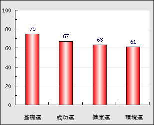 成功運 目的に対する成功運の強さをあらわします。この点数が高いほど自分の思い通りに成功し、逆に悪いと逆境・批判・障害などに苦心します。 67点