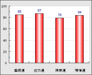 環境運 家庭や職場等での援助運・環境運を司ります。これが良いと配偶者や子供・職場の同僚などから助力が得られやすく、悪いと波乱・不和・孤独などがあります。 84点