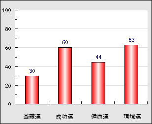 成功運 目的に対する成功運の強さをあらわします。この点数が高いほど自分の思い通りに成功し、逆に悪いと逆境・批判・障害などに苦心します。 60点