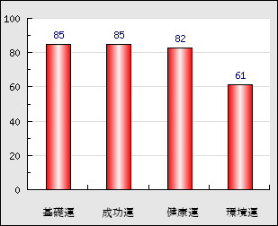 成功運 目的に対する成功運の強さをあらわします。この点数が高いほど自分の思い通りに成功し、逆に悪いと逆境・批判・障害などに苦心します。 85点